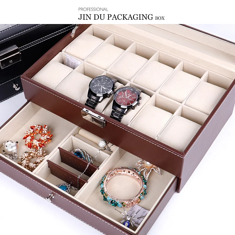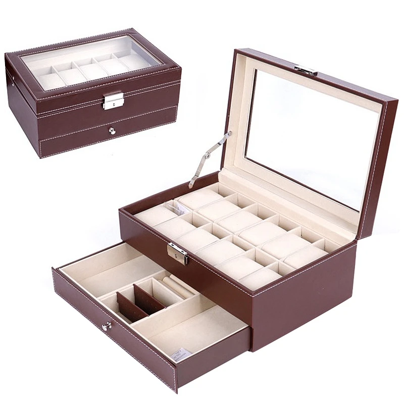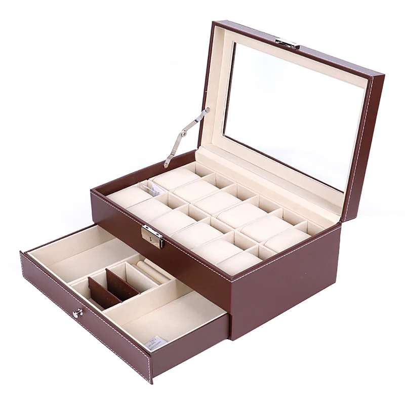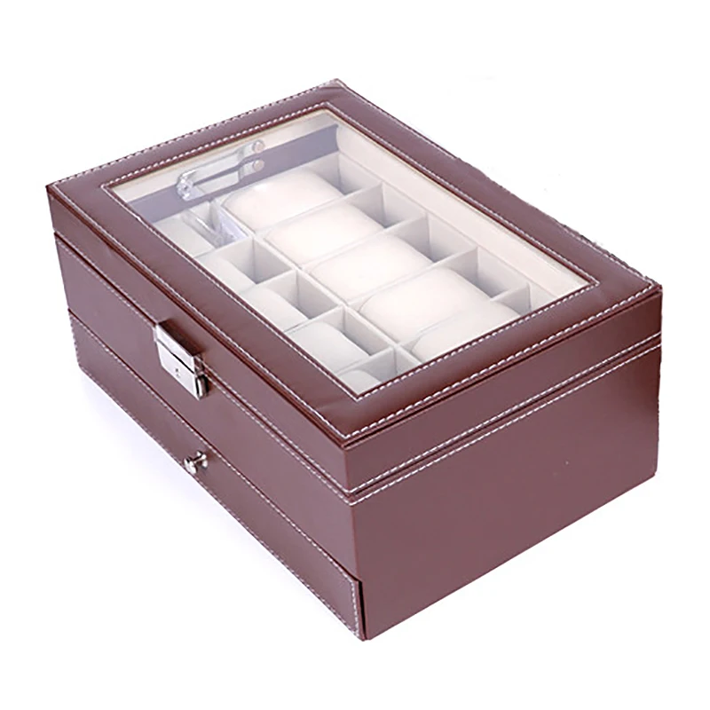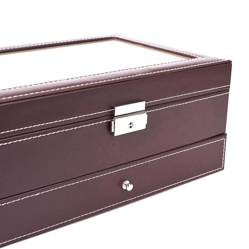 12 слотов коробка для часов мужские часы Органайзер из искусственной кожи чехол с ювелирным ящиком для хранения и дисплей коричневый