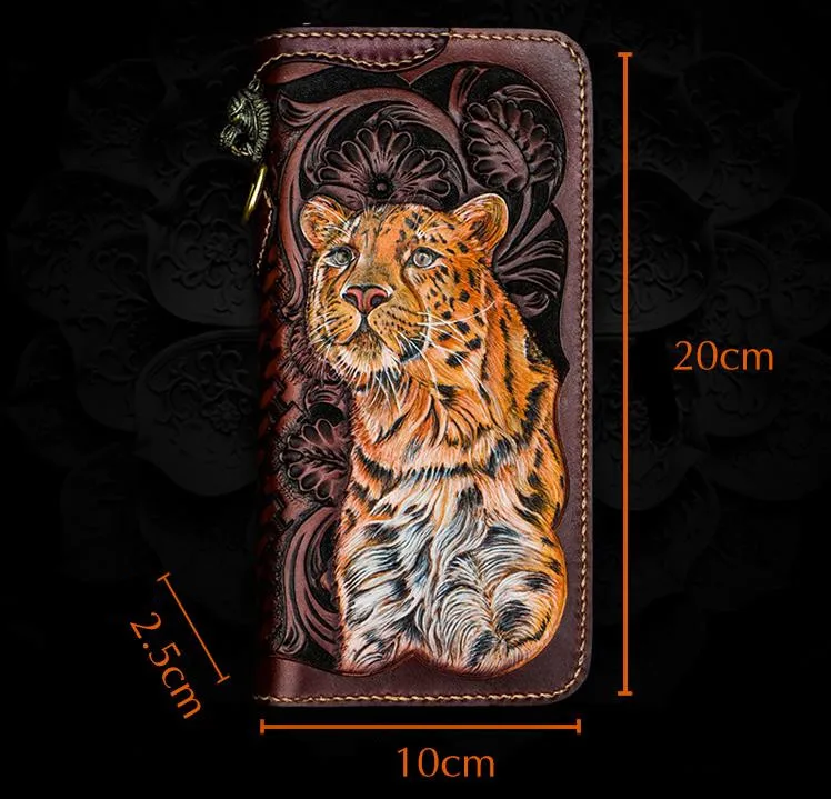 Новый мужской кошелек ручной работы, леопардовые Длинные кошельки на молнии, мужская сумка из натуральной кожи, мужские сумки для денег, вер...